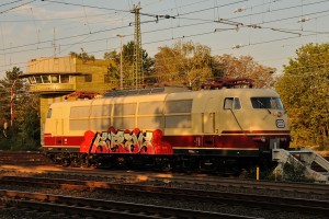 Eine leere BR 103 in Solingen, nachdem das Ding aus den Schienen gesprungen ist. |