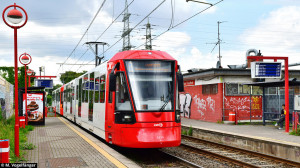Das am 25.04.2024 in Köln angelieferte Neufahrzeug HF6 5330 während der ersten Fahrt auf öffentlichen Kölner Gleisen auf der Zulaufstrecke Weidenpesch am 26.04.2024 |