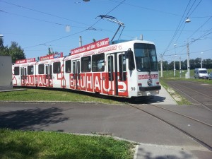 Bombardier Flexity Outlook Cityrunner 060 am 27.04.2024 am südlichen Endpunkt der Linie 2 in Solarcity.