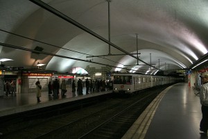 Zwischen Universitat und Marina werden 2 Gleise des Fernbahntunnels Von de r Linie 1 genutzt, während die anderen beiden der Fernbahn dienen. Da diese längere Bahnsteige hat, kann man am Plac Catalunya die Züge der Linie 1 während der Fahrt sehen, während man selber schon aufm Bahnsteig steht. |