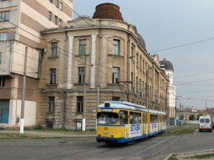 2005 wurde das Gebäude des Stadttheaters grundlegend saniert. Hier fährt Tw 1853 entlang des Theaters |