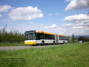 Wagen 726 als Linie 64 in Laubenheim, hat gerade Pause. |