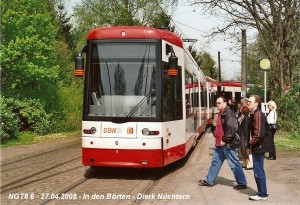 Die dritte Traktion am Eröffnungstag bildeten die TW 4 und 6. Dieser Zug fuhr dann als erster E-Wagen bis nach Brackel. |