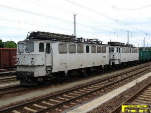 Die ehemalige E-Lok der Deutschen Reichsbahn hier vor einem Güterzug in Königs Wusterhausen. Sie gehört der Westfälischen Almetalbahn GmbH (WAB), ist aber hier für die Energie Rail GmbH Cottbus im Einsatz vor einem Braunkohlezug. Die Lok war vor der WAB in der Schweiz im Einsatz. Dort wurde wegen der hohen Bremslast ein Stromabnehmer entfernt und durch zusätzliche Bremswiederstände ersetzt. |