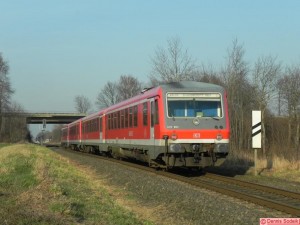 schon aus dem Bahnhof ausgefahren, passiert der 628 hier den BÜ Wiesenstraße mitten im Feld. 31.01.2014 |