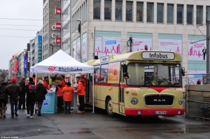 Der Infobus zur Eröffnung der Wehrhahnlinie am Jan-Wellem-Platz/Schadowstraße.