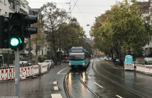 Der stadteinwärtige Bahnsteig besitzt die gleiche skurrile Dachkonstruktion. Die VGF hat den Irrsinn bereits selber bemerkt und versprach, Glasscheiben zur Rückseite einzusetzen. Nur ob das so viel bringt? |