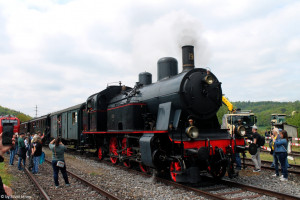 1910 beschaffte die BT (Bodensee Toggenburgbahn) bei der Maschinenfabrik Krauss-Maffei 9 Damüfloks des Typs Eb 3/5. Ab 1931 gingen die Loks in den Besitz der SBB über. Die hier zu sehende Dampflok wurde dort in Eb 3/5 5889 umnummeriert. 1965 sollte die Lok verschrottet werden, was aber dank enthusiastischen Eisenbahn-Fans des damals gegründeten Vereins DLC (Dampfloki Club Herisau) verhindert wurde. Die Lok wurde in den Ursprungszustand versetzt und erhielt wieder ihre ehemalige Nummer 9. Um den Unterhalt der Lok möglichst klein zu halten ist die Lok seit 2012 in Bauma beim DVZO stationiert, dies um technische Synergien nutzen zu können. |