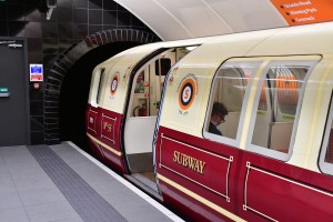 Die Züge fahren immer mit 3 Wagen. Jeder Wagen ist gute 10m lang.