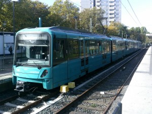 Bei der Schussfahrt aus dem Nordweststadt-Tunnel in die Station Römerstadt. Etwas redundant finde ich das Hinweisschild im anderen Gleis, dass hier ein signalgeführter Abschnitt beginnt - ist jetzt nicht so, als würde die Strecke von Ginnheim bis hier auf Sicht befahren werden. |