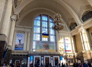 Der Fahrgastinformation in der Bahnhofshalle dienen zwei große Anzeigetafeln in Annax-Technik. Diese zeigen abwechseln in ukrainischer und englischer Sprache die nächsten Ankünfte bzw. Abfahrten, Gleisbelegungen plus eventuelle Verspätungen an - mit Zug 737 aus Zaporishshya ist 30 Minuten später zu rechnen.