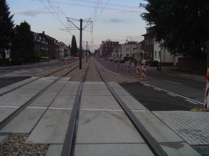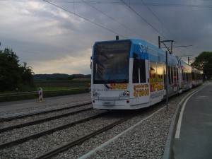 Blick auf die Endhaltestelle Weiden West mit S-Bahn Station und Wagen 4013 |