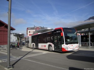 Die bisher vom ZVB Subunternehmer eingesetzten Citaros, die neu im AAGS-Kleid zu sehen sind, sind erkennbar an den kleinen Rückspiegel, denn die Wagen werden freizügig auf dem gesamten AAGS Netz eingesetzt. |