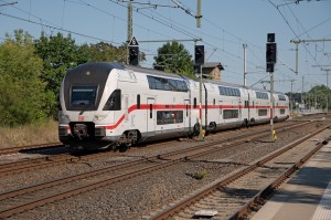 Da die Zulassung der IC2-Steuerwagen in der Schweiz um Jahre in Verzug ist und die DB keine Ressourcen für eine Sandwichbespannung der Züge durch Loks der BR147 hat, werden als Übergangslösung zwischen Zürich und Stuttgart die von der Westbahn gekauften KISS-Triebzüge eingesetzt. |