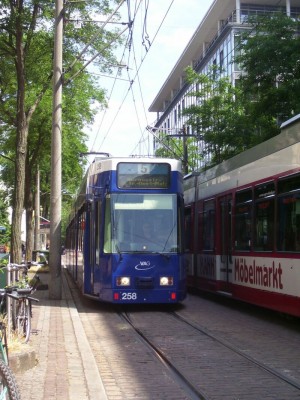 Freiburger Straßenbahn 256, in der Haltestelle Hauptbahnhof, 27.06.06. |