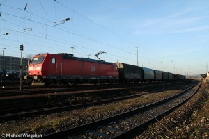 185 135 mit Güterzug bei der Durchfahrt in Flüelen |