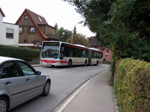 Hier ein mittäglicher Schulbus zum Hallenbad der Fachhochschule, am BZ St. Konrad. Diese Schulbuskurse fahren abgestimmt auf die Stunden der Klassen, und wurden gemeinsam mit RAB und Schulzentrum erstellt. Es gibt am Tag mehrere solcher Fahrten, manchmal werden auch 2 Klassen gleichzeitig befördert, dann fährt entweder ein Gelenkzug oder ein 15-Meter-Wagen. |
