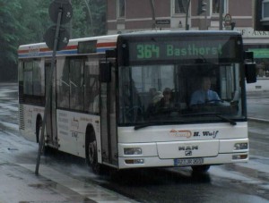 Ein MAN NM 223 der LVG Lübeck. Er fährt seit 3 Wochen Verstärkertouren auf der 562, einer sehr kurzen Kleinstraßenlinie, die vor 2 Jahren eingeführt wurde. Die HHA will jedoch in Kürze wieder die Komplette Belastung übernehmen, nachdem ein Mercedes Midibus ausgefallen war. |