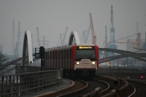 Kommt gerade aus dem Tunnel und wird gleich die Hochbahn befahren. |