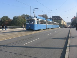 Dieser P-Wagen kam gerade aus Richtung Karlsplatz und hat schon auf St.-Veit-Straße umgeschildert. Nach kurzem Aufenthalt und einer Schleifenfahrt wird diese Einheit wieder in Richtung Innenstadt abfahren. |