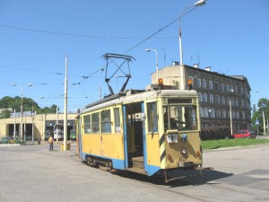 Turmwagen (LKW "STAR") im Stadtzentrum in unmittelbarer Nähe zur Haltestelle Brama Portowa. |