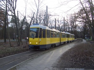 KT-Traktion nach S Mahlsdorf kurz hinter der Haltestelle Mahlsdorf-Süd. |