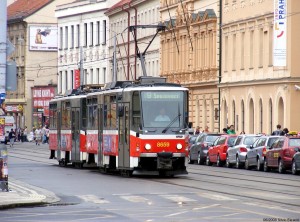 Eine der zahlreichen Brücken über die Moldau. Die T6A5 verkehren auch Solo, wie hier auf der Linie 6. |