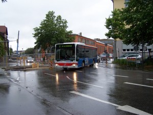 Wegen einer Veranstalltung war der Marienplatz mal wieder gesperrt, und die Busse mussten eine Umleitung fahren. So kam es auch vor, dass die Linie 1 am Busbahnhof steht. |