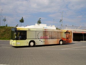 | Bus mit Werbung für DVG |