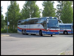 normaler Volvo Überlandbus und Frachtabteil.Lulea Busstation.