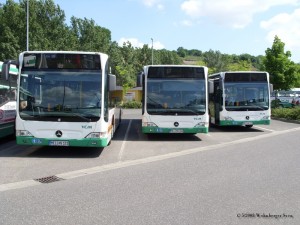 Mercedes Benz Facelift Busse im Hof der VGM |