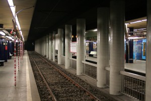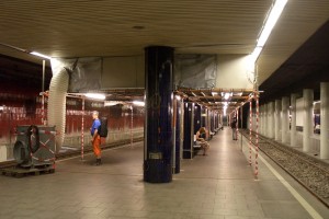 Der ehemalige Bahnsteig Richtung Mülheim - auch das Mäuerchen ist mittlerweile größtenteils entfernt. Auf dem mittleren Bahnsteig wurde mittlerweile eine Gerüst gebaut - hoffentlich nur zum Deckenumbau und nicht auch als Sichtblende während der Sommerferien... |