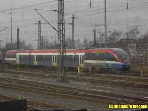 Der Talent 643 06 der PEG hier bei der Zugkreuzung in Epe (Westf.). Die PEG fährt seit dem 12. Dezember 2004 auf der Westmünsterlandbahn von Dortmund nach Enschede. |