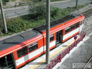Im Oktober 2004 steht hier Achtachser 3205 "Peters Brauhaus" mit der türlosen Seite am Bahnsteig, um als einsetzende Linie 6 die Fahrgäste durch die Fensterklappen einsteigen zu lassen. ;) |