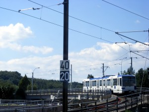 Ein Schweizer B-Wagen an der Endstation der M1. |