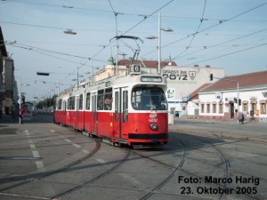 Zu sehen ein E1-Triebwagen an der Haltestelle Alser Strasse |