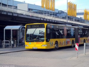 Zwischen dem Frankfurt Airport Center und dem Terminal 1 liegen die Bushaltestellen des besagten Terminals. Man sieht schon an der Umgebung, wo man ist. |