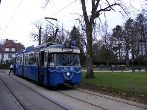 MVG 2021, ein P-Wagen aus dem Jahre 1968, ist hier als Linie 21 nahe des Hohenzollernplatzes zu sehen.