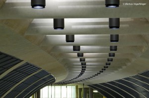 Diese Treppenanlage verbindet die mittlere Ebene der U-Bahnhaltestelle Heumarkt mit der oberen Verteilerebene. Blickrichtung Osten. |