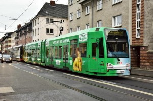 Niederflurwagen 4008 hat eine neue Ganzreklame für "Dresden/Sachsen" erhalten. |