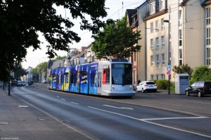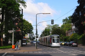 zwischen den Haltestellen Am Trippelsberg und Schöne Aussicht, Richtung Benrath Betriebshof unterwegs.