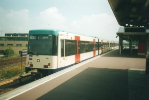 Ein Zugverband aus 3x M4/S3 überquert den riesigen P+R-Parkplatz von Amsterdam Sloterdijk und schlängelt sich dabei auch noch zwischen ein paar Wolkenkratzern des aufstrebenden Businessviertels durch. |