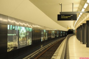 das östliche Gleis, auf dem der Fahrbetrieb der U55 statt findet.