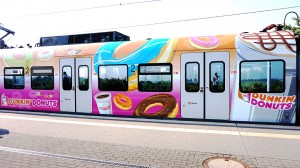 mit Werbung für "Dunkin Donuts" |