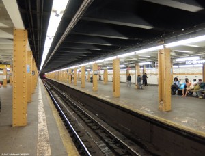 Das Lincoln Center gibt es schon ziemlich lange, ich glaube, seit den 50ern. Das hat zeitlich gereicht, dass der Zusatz sogar noch in die Namenfliesen eingepflegt wurde. Auch ansonsten ist der Bahnhof für seine Alter in einem relativ guten Zustand. |