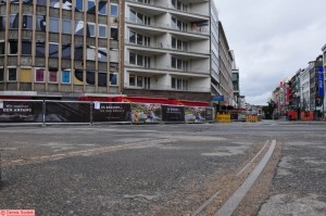 solange ein neuer Hochbahnsteig im Bau ist, für die U75, halten die Bahnen hier am provisorischen Bahnsteig.