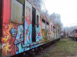 Obwohl nur zwei Jahre länger da als 673, hat 211 wohl von allen Fahrzeugen der Feuerwehrschule am meisten gelitten. Durch seinen Standort unter der Baumreihe ist der Wagenkasten völlig versifft und auch verrostet, die Innenräume sind komplett leergeräumt und der Führerstände gleichen einem Schlachtfeld. |