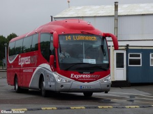 Kommt von Cork und fährt in wenigen Sekunden weiter nach Tralee. Bei Bus Éireann helfen die Fahrer bei Bedarf sogar beim Einladen des Gepäcks. Das öffnen der Gepäckklappen erfolgt außerdem mit dem öffnen der Türe vollkommen automatisch. Vor dem öffnen und schließen der Türe und der Klappen ertönt immer die Ansage "Stand Clear of the Doors pleas", allerdings in Oxford-Englisch und nicht in irischem Englisch, mit dem der Oxford-Englisch-Sprechende Brite wohl nicht viel anfangen kann. |