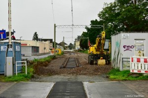 Blick Richtung Brühl Süd vom Bahnübergang Clemens-August-Straße am 12.08.2017. |
