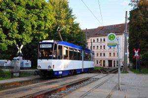 Im Herzen von Görlitz. Auf der Linie 3 verkehren tagsüber Doppeltraktionen Tatra.